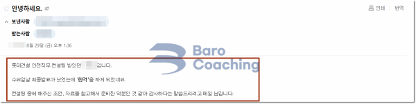 바로코칭을 통해 합격한 수강생들의 실제 문자/카톡 후기를 모았습니다.