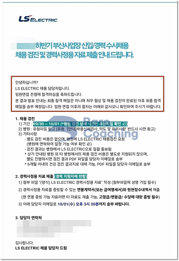 바로코칭에서 컨설팅 받은 학생의 LS일렉트릭 면접 합격 후기입니다.