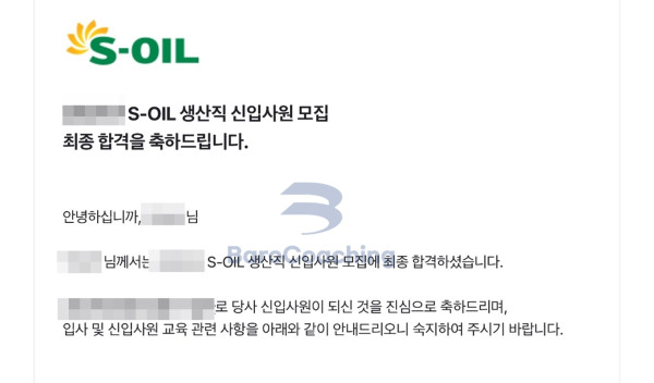 바로코칭에서 컨설팅 받은 학생의 S-OIL 면접 합격 후기입니다.