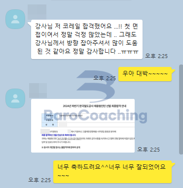 바로코칭을 통해 합격한 수강생들의 실제 문자/카톡 후기를 모았습니다.