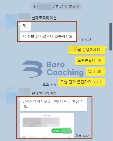 바로코칭에서 컨설팅 받은 학생의 현대코퍼레이션 면접 합격 후기입니다.