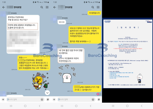바로코칭을 통해 합격한 수강생들의 실제 문자/카톡 후기를 모았습니다.