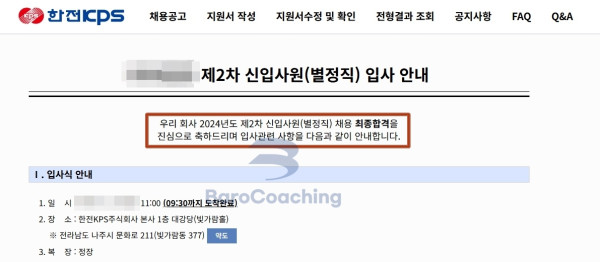 바로코칭에서 컨설팅 받은 학생의 한전KPS 면접 합격 후기입니다.