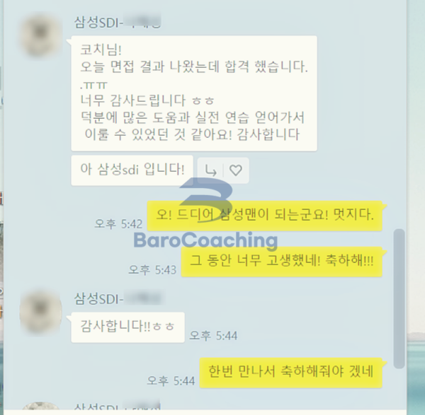 바로코칭에서 컨설팅 받은 학생의 삼성SDI 면접 합격 후기입니다.