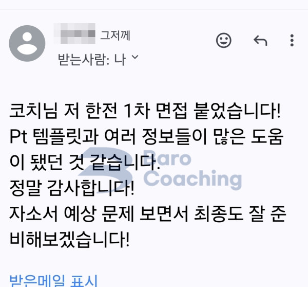 바로코칭을 통해 합격한 수강생들의 실제 문자/카톡 후기를 모았습니다.