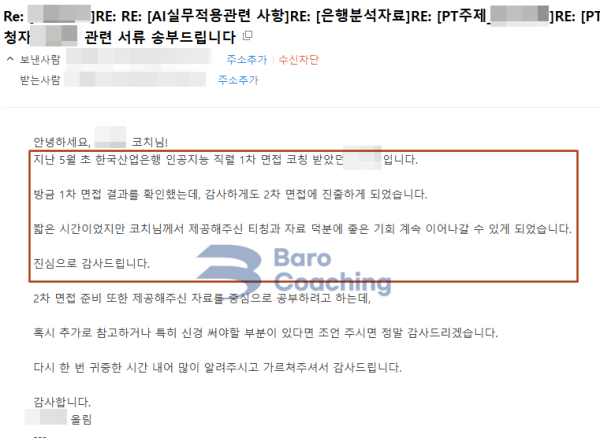 바로코칭에서 컨설팅 받은 학생의 한국산업은행 면접 합격 후기입니다.
