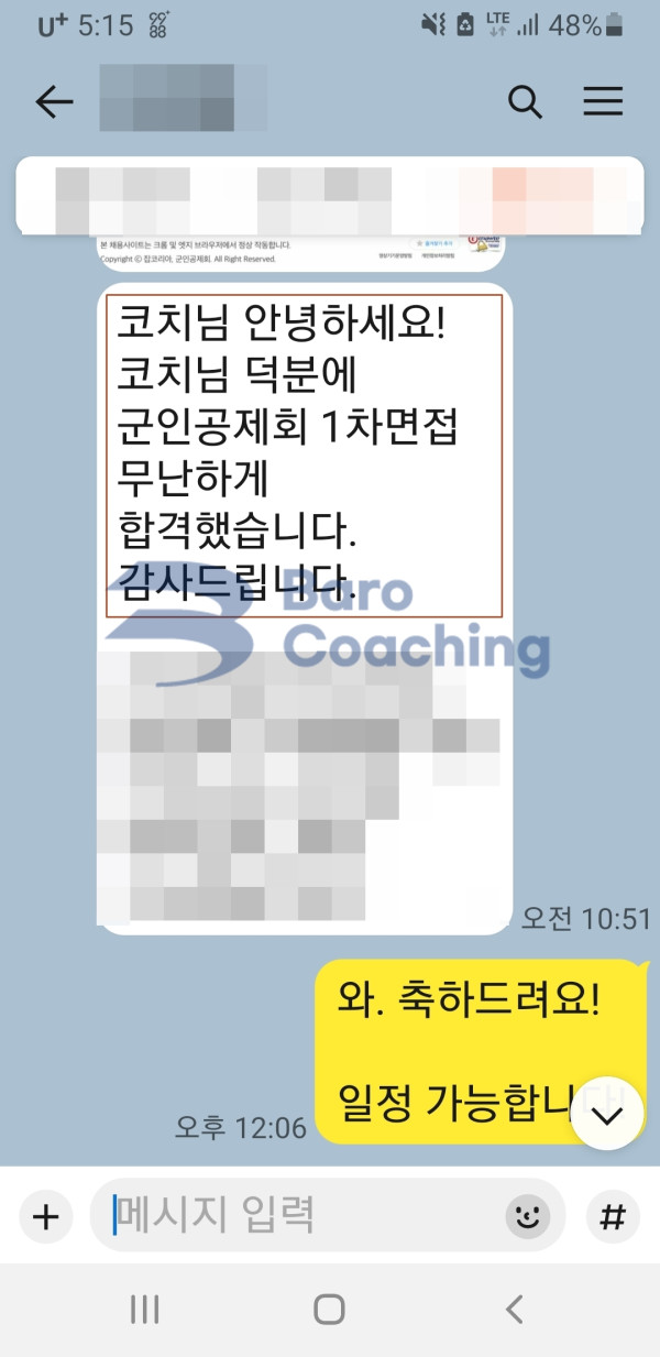 바로코칭을 통해 합격한 수강생들의 실제 문자/카톡 후기를 모았습니다.